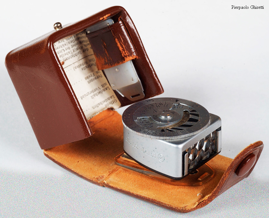 Il più piccolo esposimetro per Leica mai apparso sino ad allora, vero miracolo di miniaturizzazione, fu immesso sul mercato nel 1954. Peso di appena 30g.e 3,3 centimetri di lunghezza. Fornito anche in una elegante scatoletta in pelle. con slitta incorporata e diffusore.