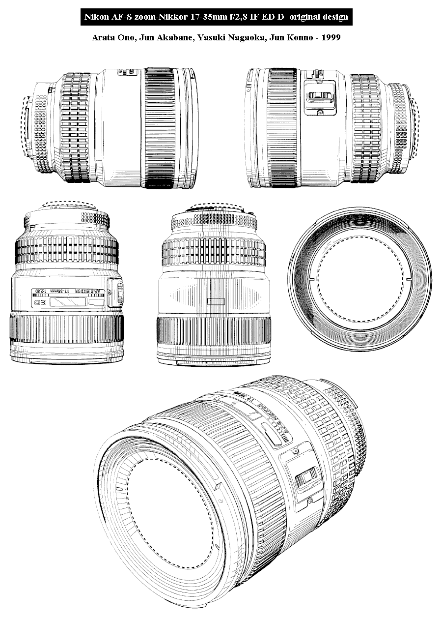 Nikkor 17-35mm f/2,8 efficiency and drawings showing glass and optical data