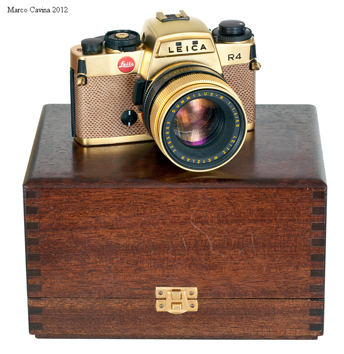 I modelli Leica R3 ed R4 in esecuzione celebrativa placcata oro a 24 carati, così come le analoghe versioni a telemetro Leica M4-2 ed M4-P, sono prodromi dell'entusiasmante quanto effimera fiammata che investì l'economia da fine anni '80 a metà anni '90, quando tutto (in apparenza) sembrava filare con il vento in poppa e schiere di imprenditori di successo e nuovi benestanti diedero il la ad una stagione di savoir vivre chiassosa e, se vogliamo, anche un po' ostentata, come spesso avviene quando il benessere arriva rapidamente e senza troppi sforzi.