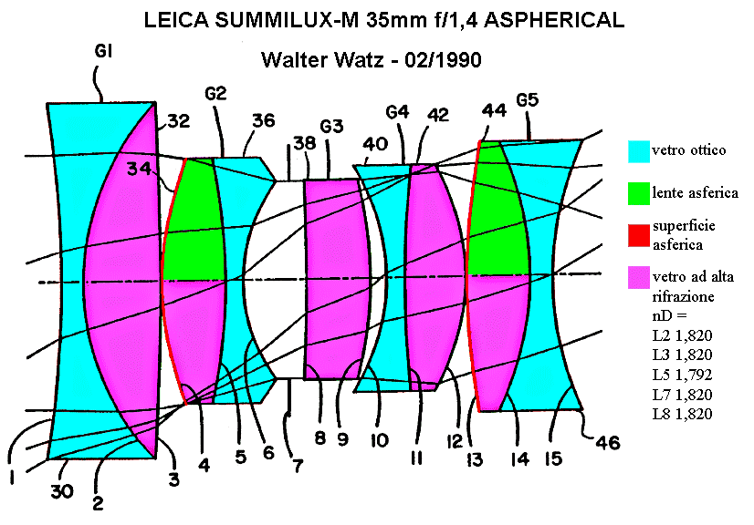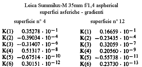 1) Summilux-M 35/1,4: l'archetipo dei gauss Leitz asimmetrici; notare