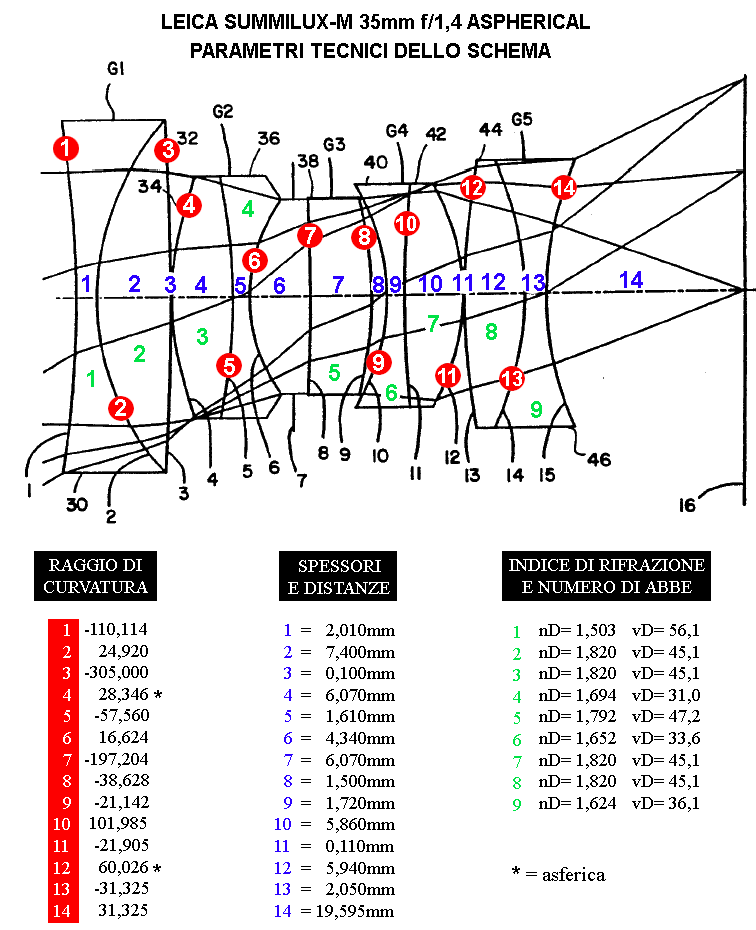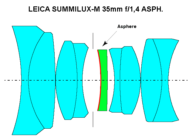 lo schema ottico del Summilux Asph.; il passaggio da due lenti asferiche molate